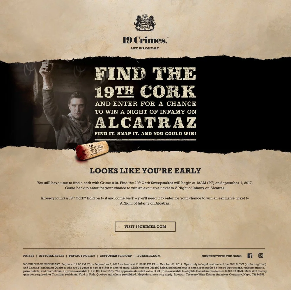 The solution. Convert the stories of rebelliousness at the heart of 19 Crimes into social currency for our ‘gram-driven audience. These extremely unusual stories were delivered in a way that brought the “true crime” tales of the brand to life, literally. The goal was an experience so viscerally engaging that once our millennial audience picked up a bottle they simply couldn’t put it back down.